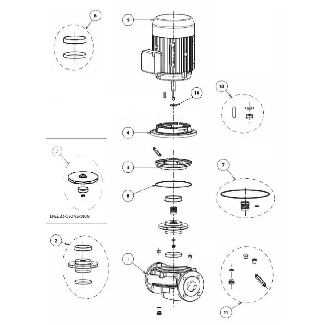 Genuine Lowara Impeller Kit designed for e LNE Series Electric Pumps. Built for reliable maintenance and long service life in demanding inline applications.