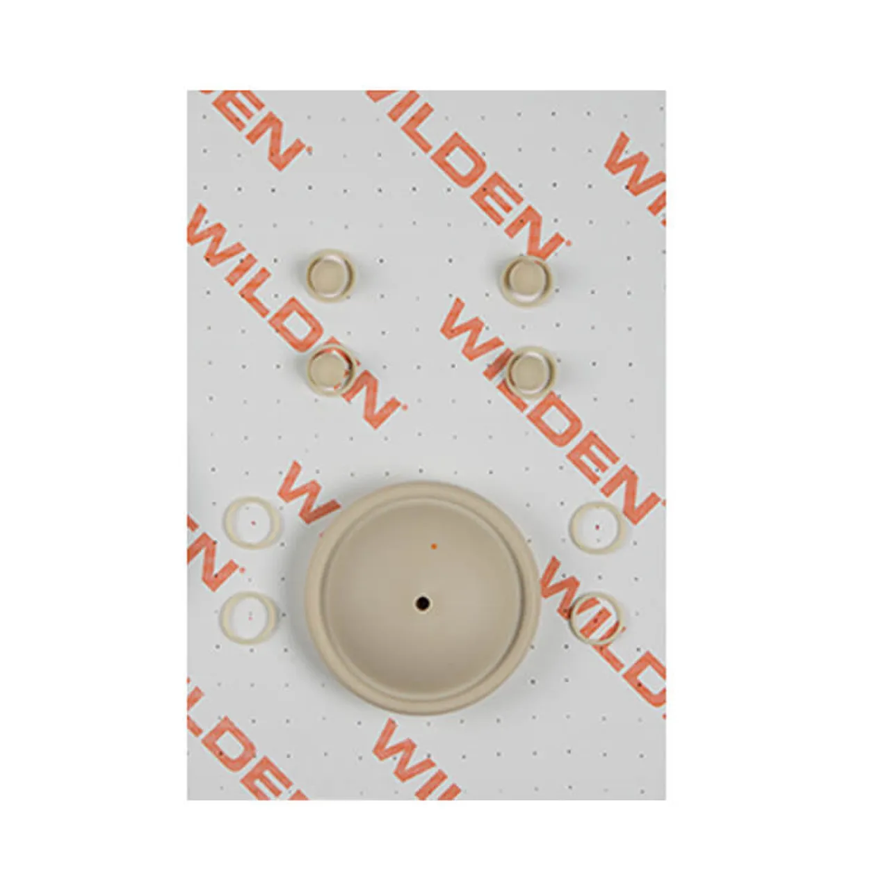 The Wilden Wet End Kit 01-9804-58 rebuilds the fluid section of a 1/2" clamped metal air-operated double-diaphragm pump. Manufactured from Santoprene, it injection-molded thermoplastic with long flex life and excellent abrasion resistance. This service kit contains diaphragms, valve balls, o-rings to replace worn components, restoring suction lift and efficient operation. The kit helps maintain factory warranties and keeps the pump running smoothly in acidic and caustic fluids. Includes 2 x Diaphragm Primary Wilflex (01-1010-58), 4 x Ball Valve Wilflex (01-1080-58), 8 x O-Ring Wilflex (01-1260-58)