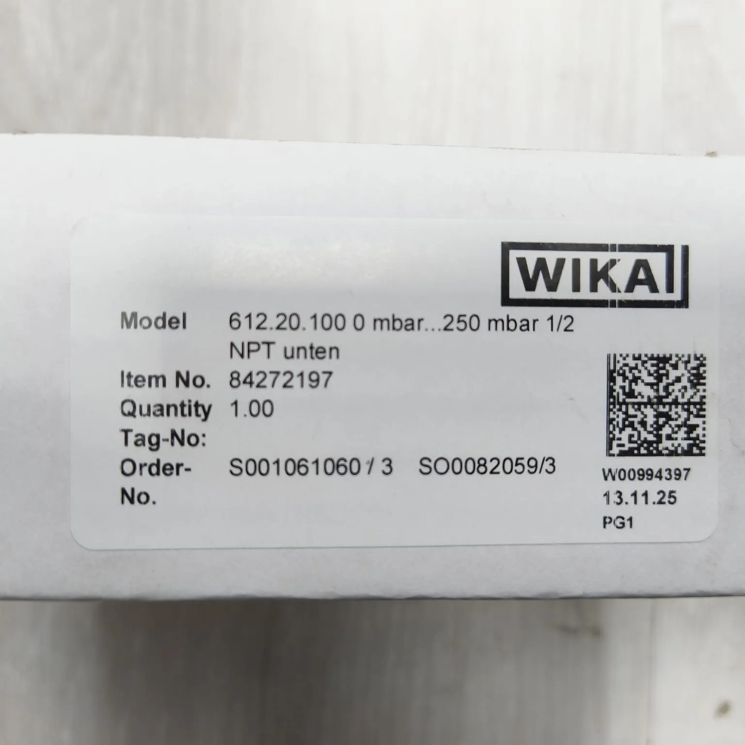 The WIKA 612.20.100 capsule pressure gauge, belongs to the industrial low-pressure series designed for precise measurement of small positive pressures of dry, non-aggressive gases. A copper alloy capsule measuring system converts the low process pressure into a proportional movement, which is indicated on the large 100 mm dial with 0…250 mbar primary scale and red mmWC secondary scale. The stainless steel case with cam-ring (bayonet) bezel and flat instrument glass window provides robust protection for demanding plant environments. Design and performance follow EN 837-3, with an accuracy of class 1.6 and typical permissible temperature range from -20…+60 °C ambient and up to +100 °C medium. The 1/2" NPT lower Mount process connection simplifies installation on manifolds, impulse lines or panels, making this capsule gauge ideal for ventilation, filter monitoring, level indication using mmWC units and other low-pressure pneumatic applications.