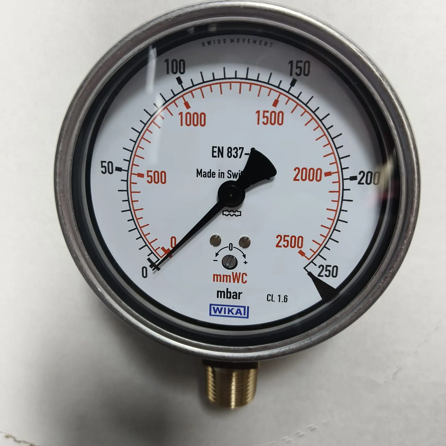 - Dual scale 0…250 mbar primary & secondary scale mmWC (red).