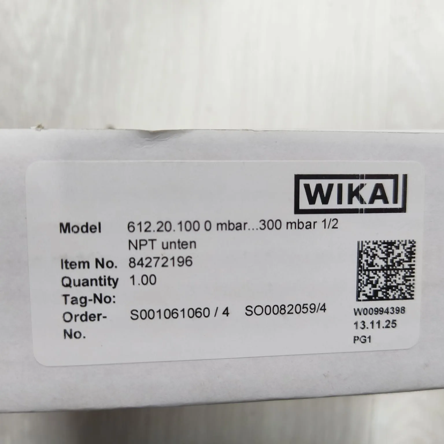 Wika Capsule Pressure Gauge Model 612.20.100, 0…300 mbar, Dual Scale, 4" Dial, 1/2" NPT Lower Mount, 84272196