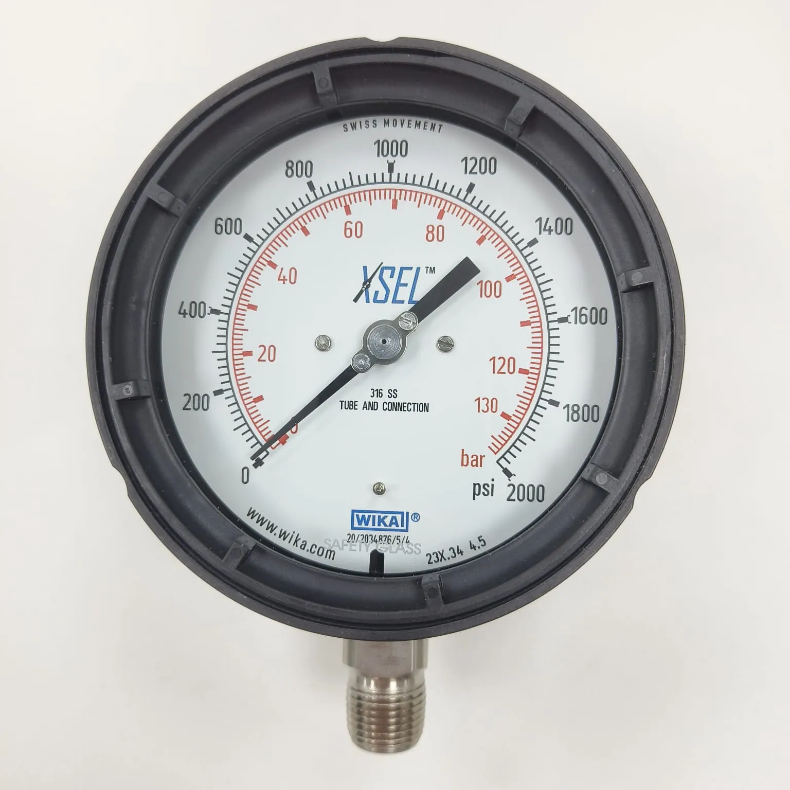 WIKA XSEL Bourdon Tube Gauge 232.34, 0...2000 psi, Dual Scale psi/bar, 4.5" Dial, 1/2" NPT Bottom Mount, 50381547