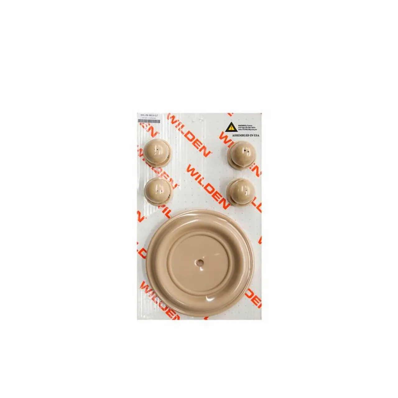 The Wilden Wet End Kit 08-9814-57 rebuilds the fluid section of a 2" bolted metal air-operated double-diaphragm pump. Manufactured from Wil-flex, it Santoprene-based elastomer offering excellent abrasion and chemical resistance. This service kit contains diaphragms, valve balls, valve seats to replace worn components, restoring suction lift and efficient operation. The kit helps maintain factory warranties and keeps the pump running smoothly in acidic and caustic fluids. Includes 2 x Diaphragm Primary EZ FG WF (08-1022-57), 4 x Ball Valve FDA Wil-flex (08-1080-57), 4 x Seat Valve FDA Wil-flex (08-1120-57)